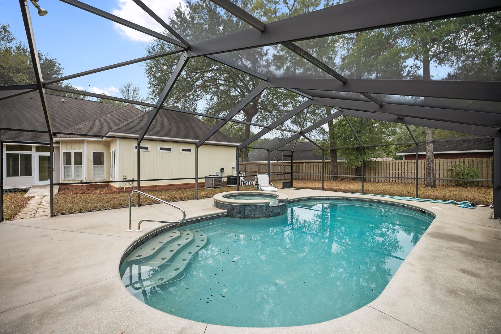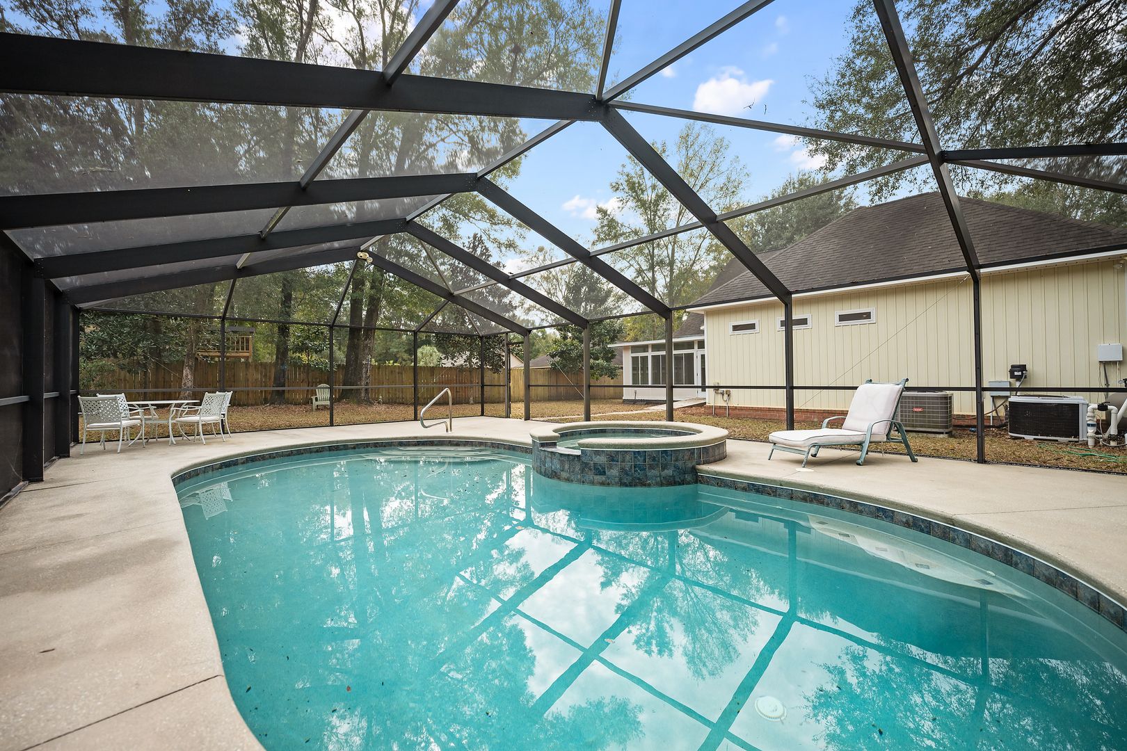 Welcome to your dream home in the heart of Magnolia Springs, AL. This stunning property boasts three spacious bedrooms and two full bathrooms, offering ample space for comfort and relaxation. The house features a mix of tile and hardwood floors, adding a touch of elegance and sophistication to the overall design. The fenced yard provides a secure outdoor space, perfect for leisure activities or simply enjoying the beautiful surroundings. The private pool, serviced regularly, is an ideal spot for cooling off during hot summer days. For those seeking a bit of luxury, the private Jacuzzi offers a perfect retreat. The sunroom is an added bonus, providing a bright and airy space for reading, relaxing, or enjoying a cup of coffee. This house is more than just a place to live, it's a lifestyle. Experience the best of Magnolia Springs living in this beautiful home.